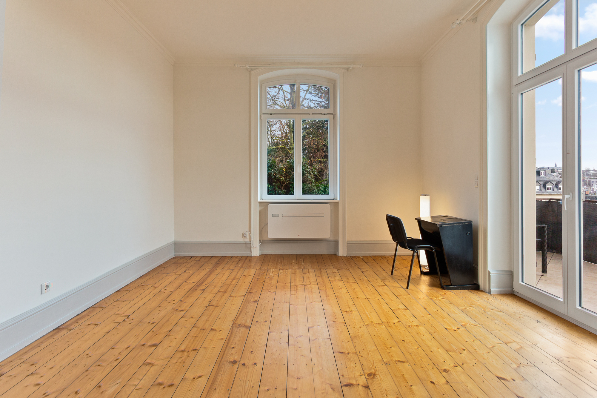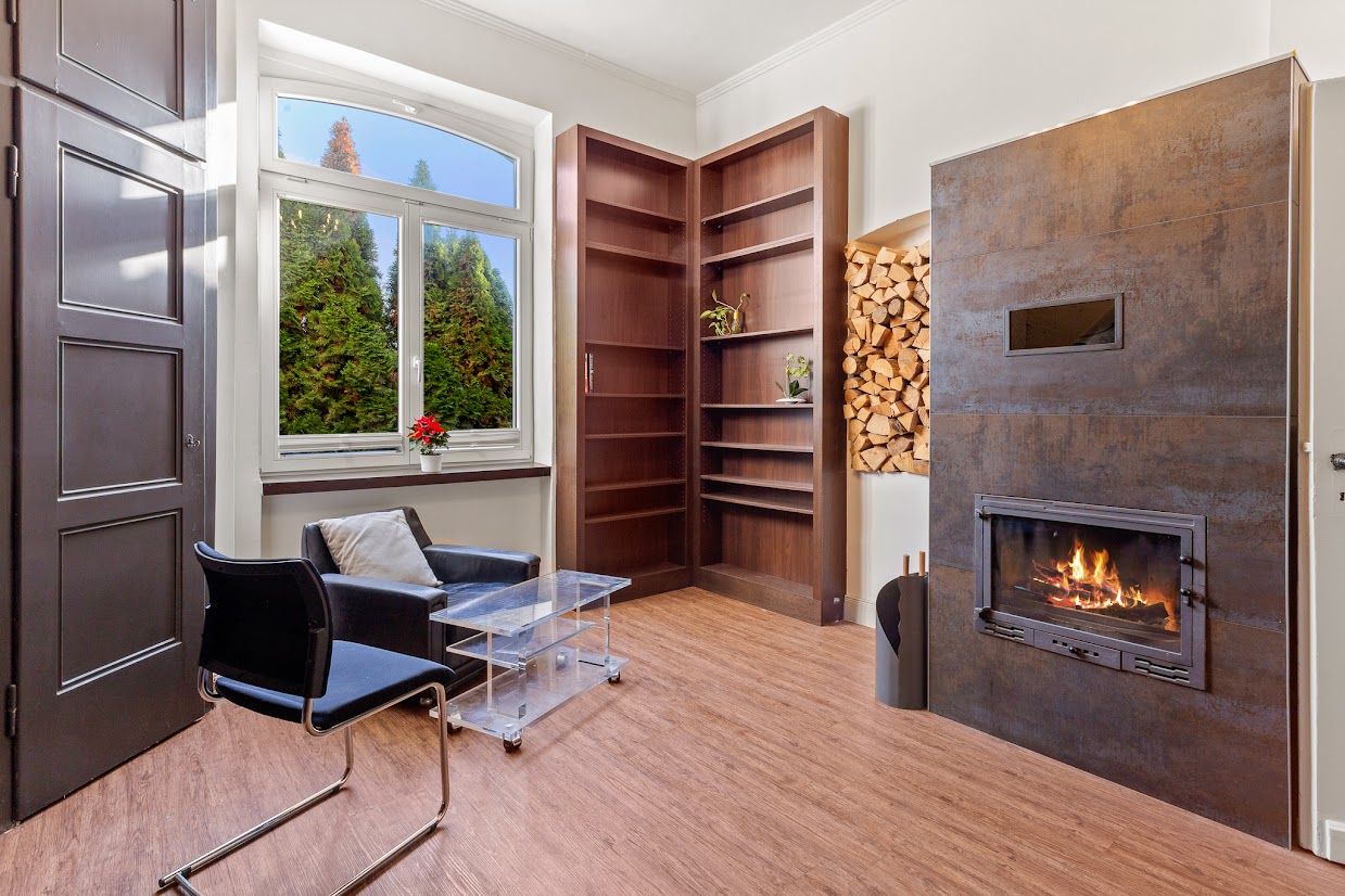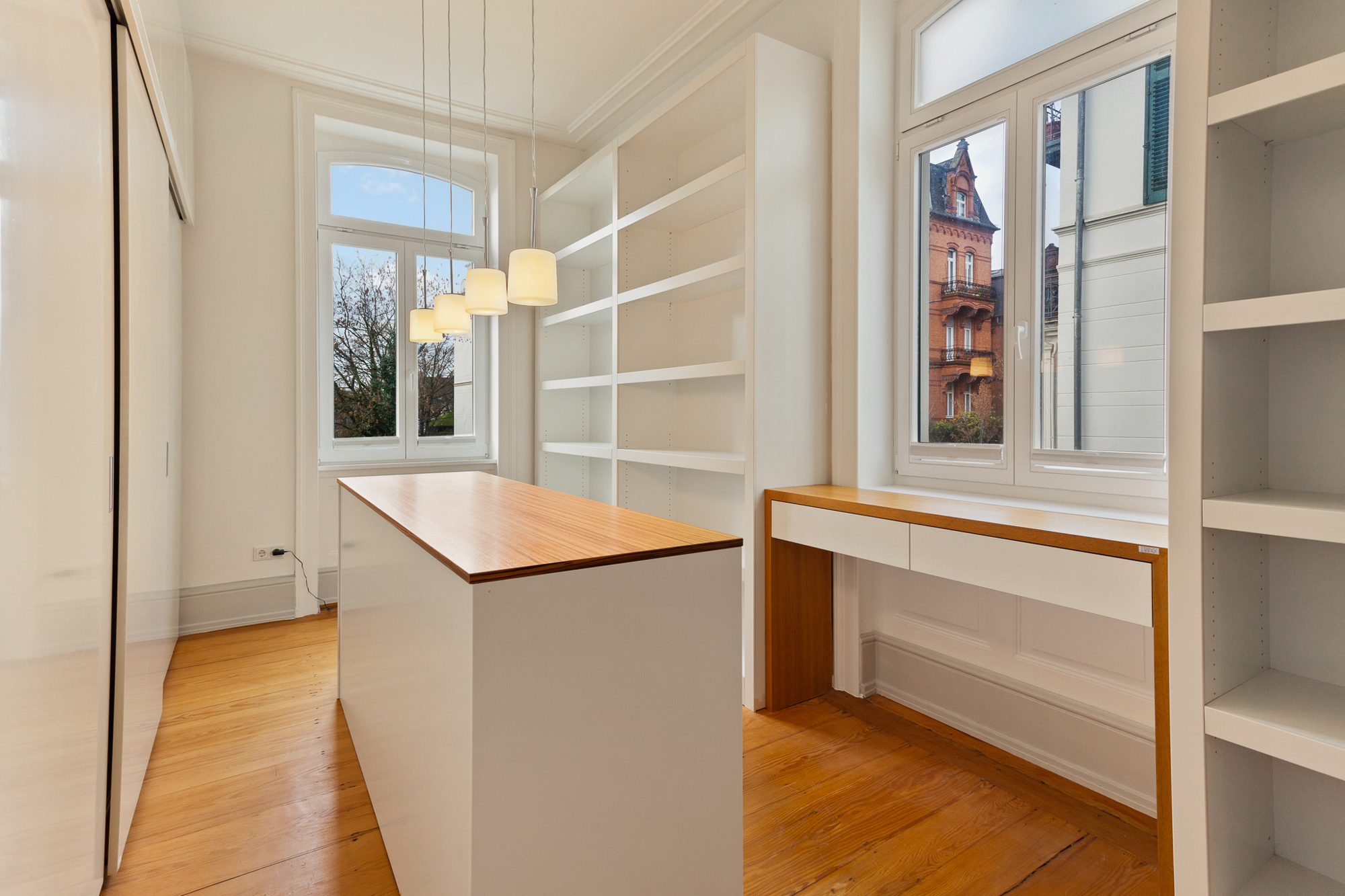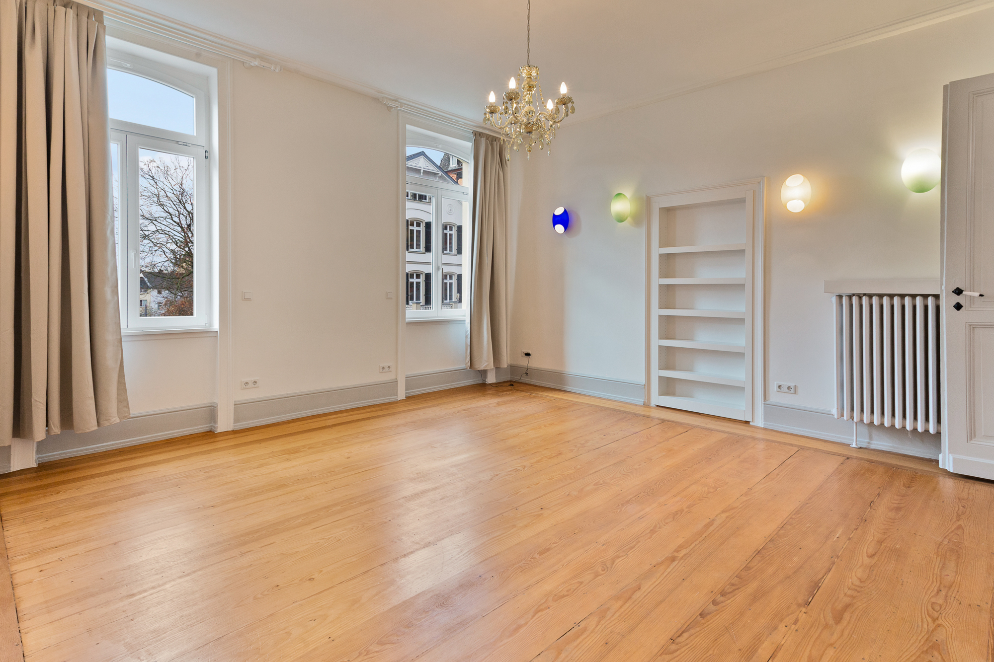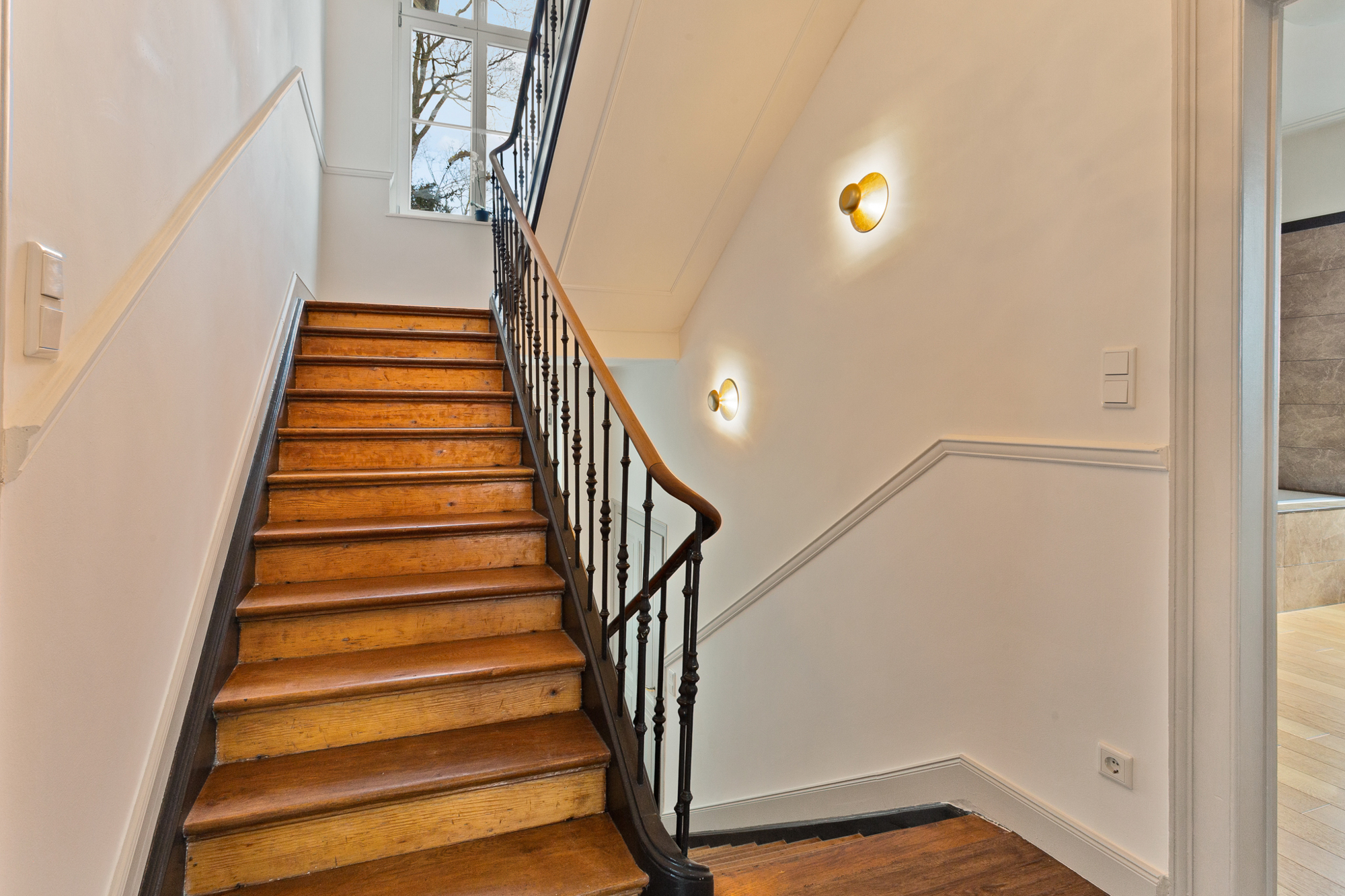 Das historische Ambiente des Hauses wird durch liebevoll restaurierte Details und hochwertige Materialien unterstrichen. Große Fensterflächen lassen viel Tageslicht in die Räume strömen und schaffen eine angenehme Atmosphäre.