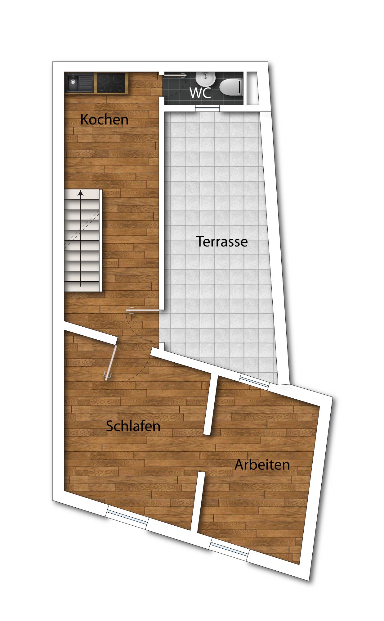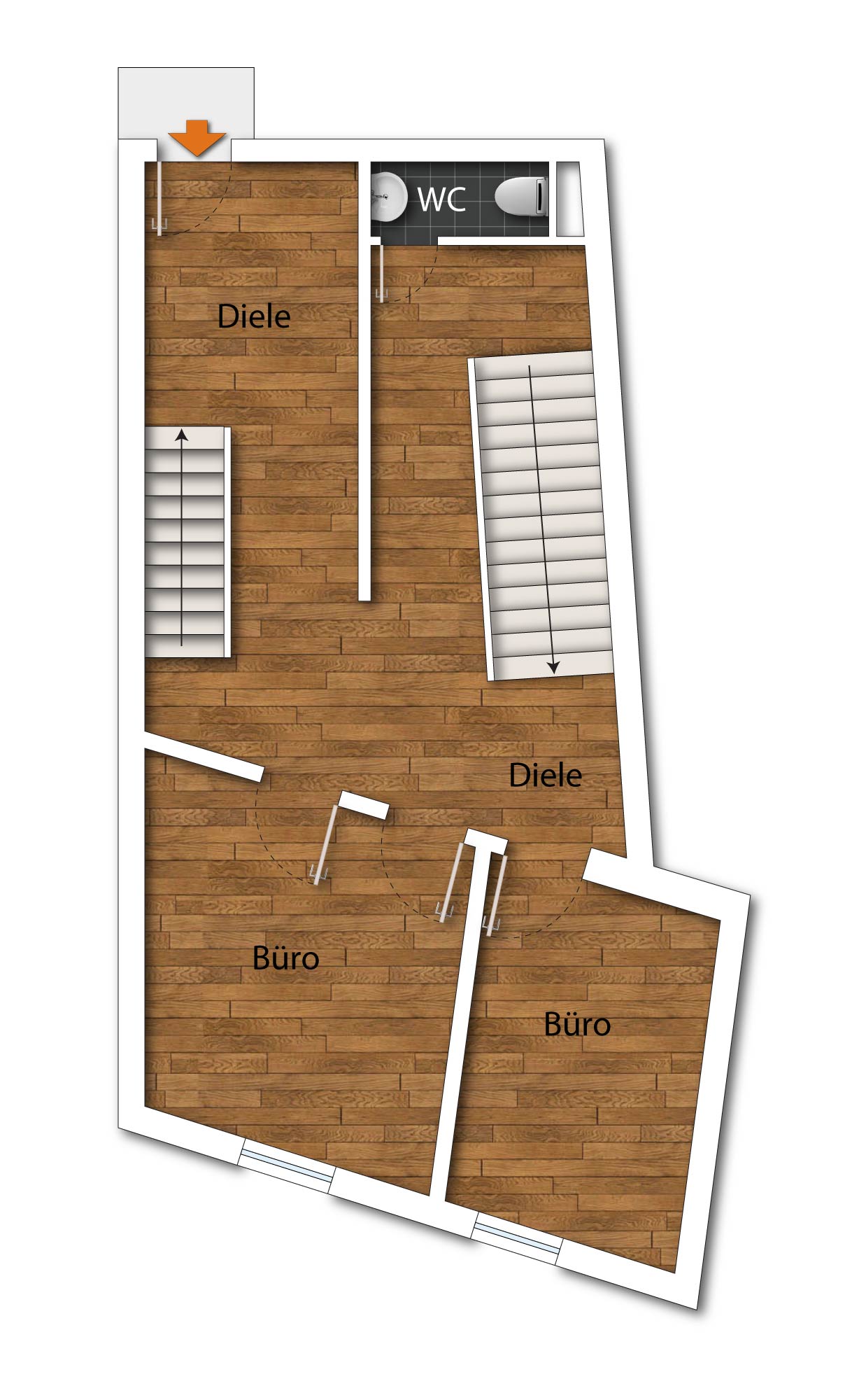 Die Gewerbeeinheit erstreckt sich über drei Etagen und bietet ideale Voraussetzungen für die Realisierung eines modernen Co-Working-Spaces. Flexible Arbeitsplatzkonzepte und diskrete Rückzugsbereiche lassen sich hier gleichermaßen umsetzen. Ein besonderes Highlight ist die direkt angeschlossene Wohnung, die optional selbst genutzt oder an Kunden und Geschäftspartner mitvermietet werden kann – eine attraktive Erweiterung für vielseitige Nutzungsmöglichkeiten.