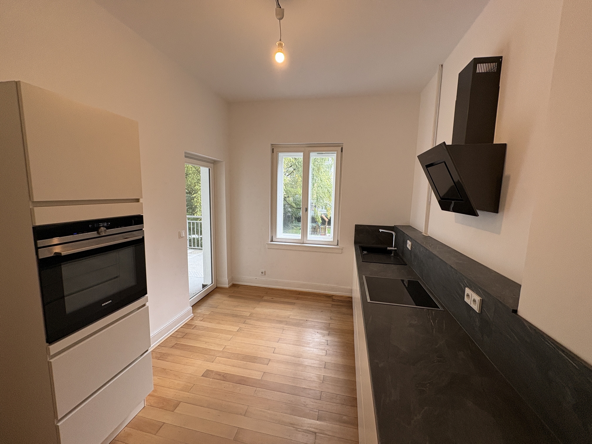 Die Wohnung wurde im Jahr 2022 kernsaniert und befindet sich in der ersten Etage. Sie besticht durch eine gehobene Innenausstattung mit Echtholz-Dielen, doppelverglasten Holzfenstern, moderne Einbauküche sowie einer stilvollen Badaustattung. Zusätzlich steht eine separate Gäste-Toilette zur Verfügung.