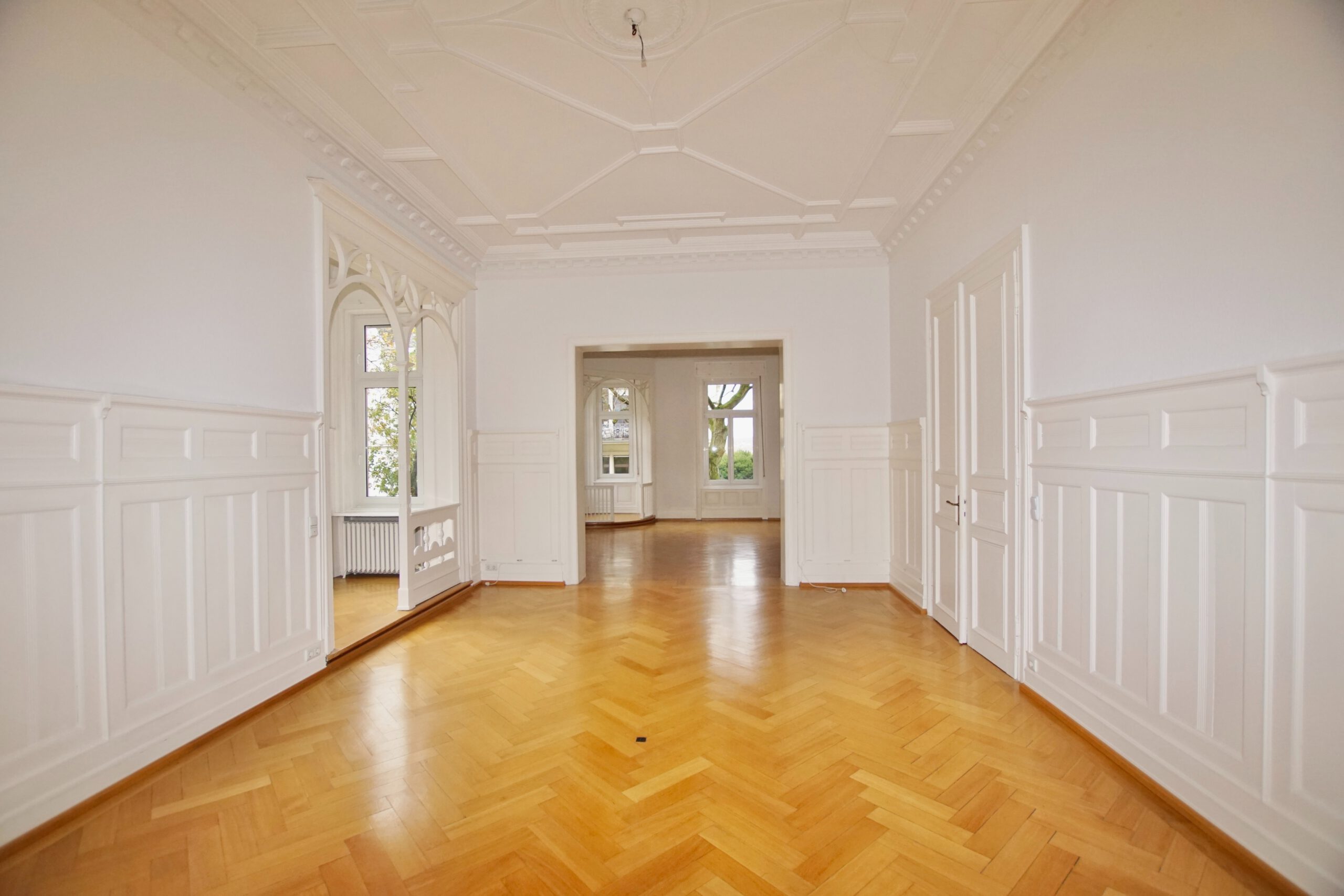 This 192 sqm apartment is located on the ground floor of a listed historic villa.