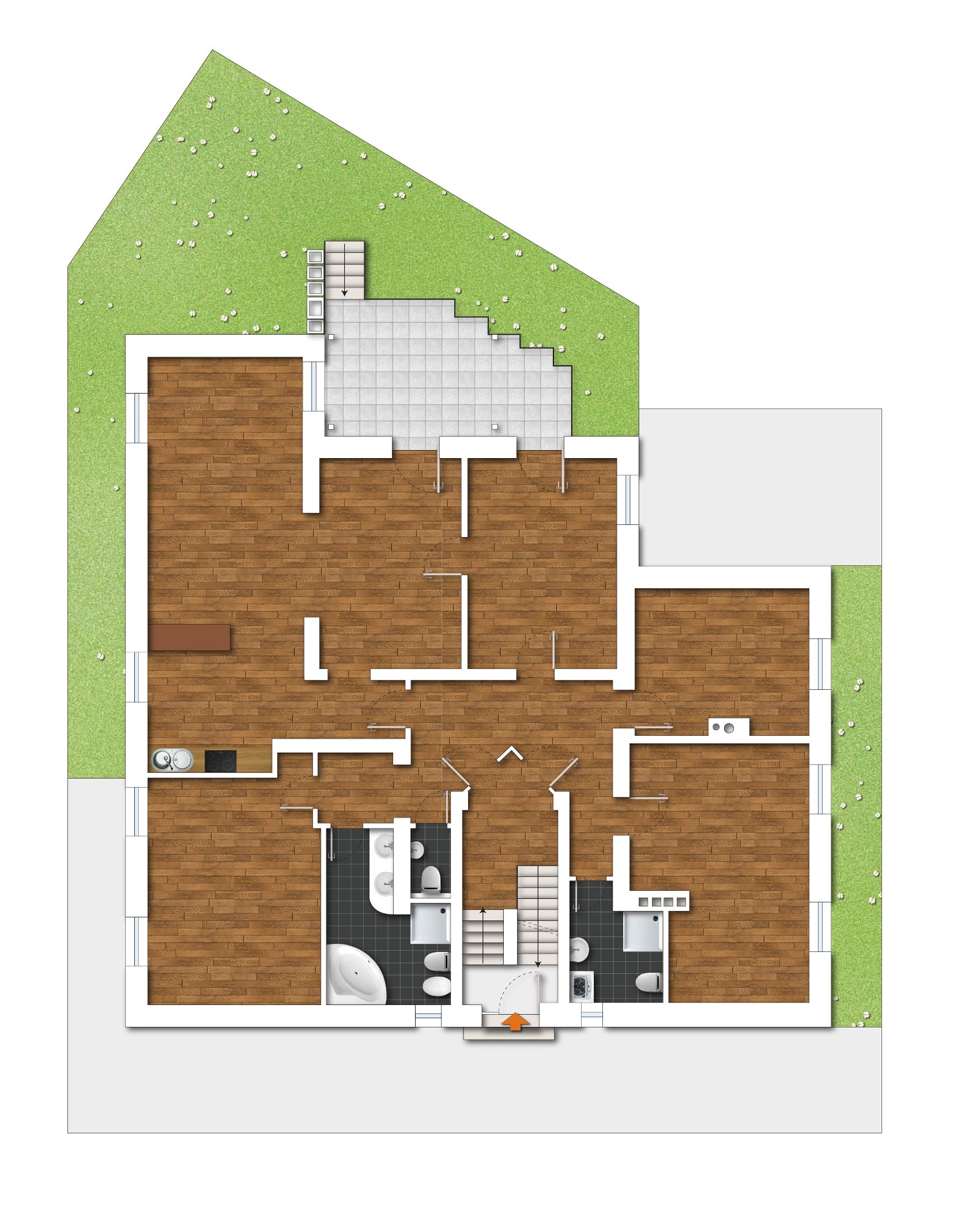 Situated on the ground floor of this four-unit villa, the apartment offers a very high level of living comfort. With great attention to detail, an exclusive interior design has been created here. In addition to various built-in wardrobes and striking designer lighting, the luxurious bathroom and the open, high-quality fitted kitchen complete this exceptional offering.