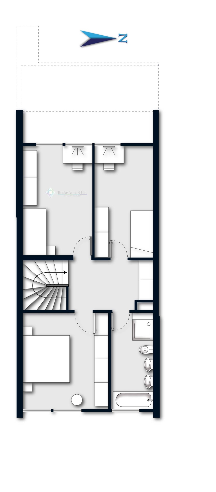 Im zweiten Obergeschoss stehen insgesamt drei Zimmer zur Verfügung, die als Schlaf- und Kinderzimmer, oder Büroräume genutzt werden können Ein weiteres Badezimmer auf dieser Etage ergänzt die Raumaufteilung.