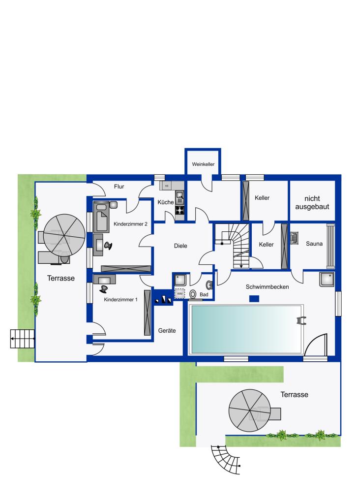 Ausreichend Kellerräume, Hauswirtschaftsraum, Weinkeller und eine Garage stehen Ihnen zur Vefügung.