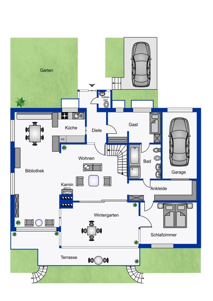 So auch hier in der Weiherallee: auf über 208 m² Wohnfläche auf einer Ebene, empfängt Sie der repräsentative Eingang und führt in den imposanten Wohnbereich mit offenem Kamin, Bibliothek und Wintergarten. Die großen Fensterflächen geben den Blick frei in den wunderschön angelegten Garten mit altem Baumbestand, Teich, Gartenhaus und vielen lauschigen Plätzen; ob unter dem Mirabellenbaum oder in einer der anderen verwunschenen Ecken.