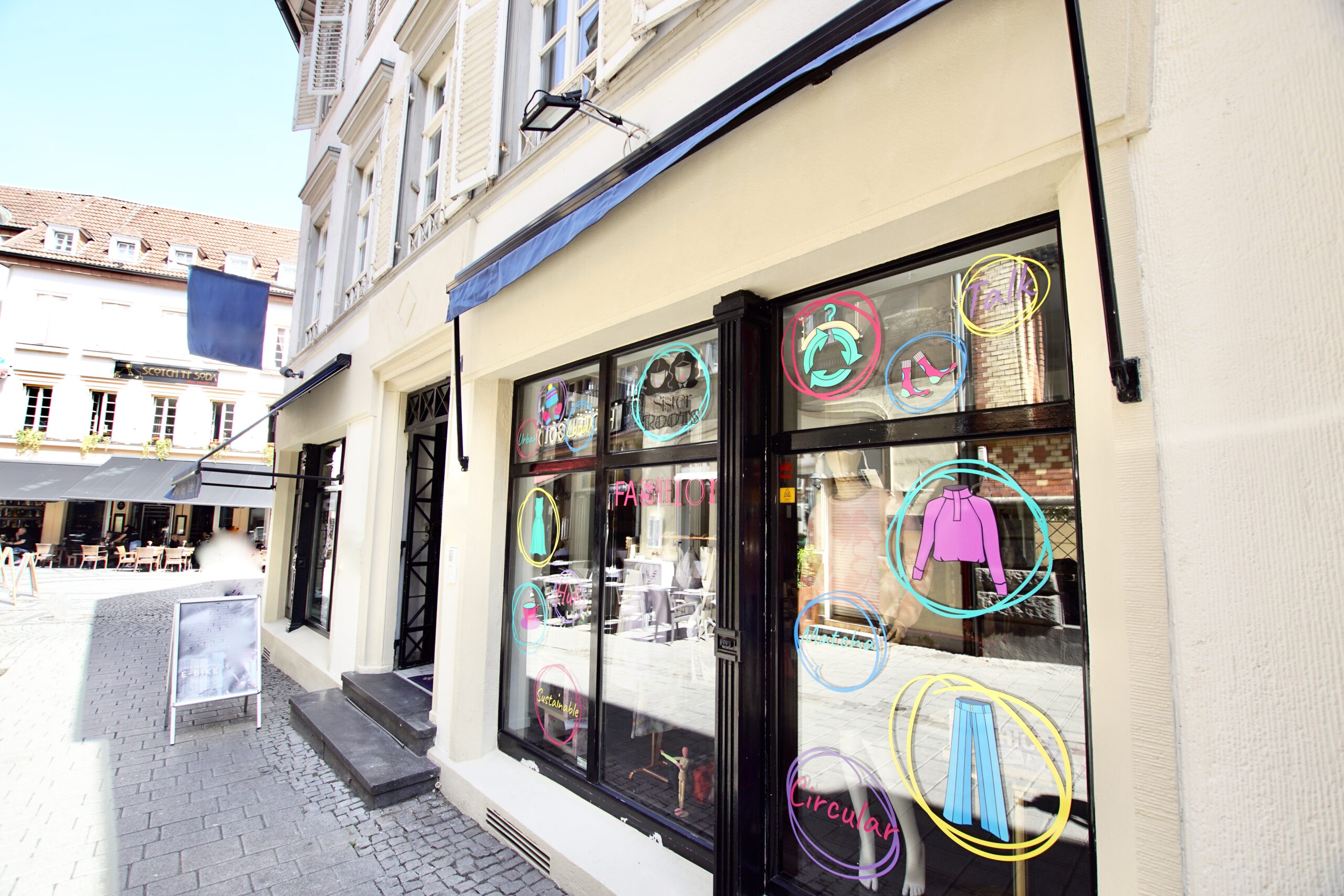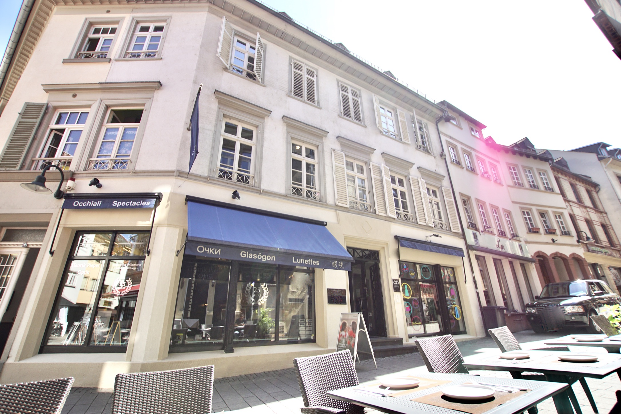 Mit großer Fensterfront im Erdgeschoss und kleingliedrigen Fenstern mit Klappläden in der oberen Geschossen, liegt dieses historische Haus einsichtig für Laufkundschaft aus verschiedenen Richtungen kommend.