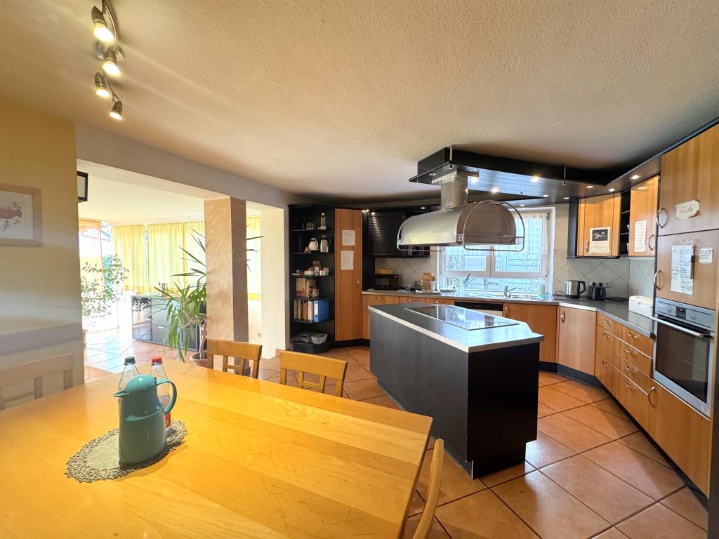 Besonders schön ist der große Aufenthaltsbereich mit Küche und Ausgang in den Garten.