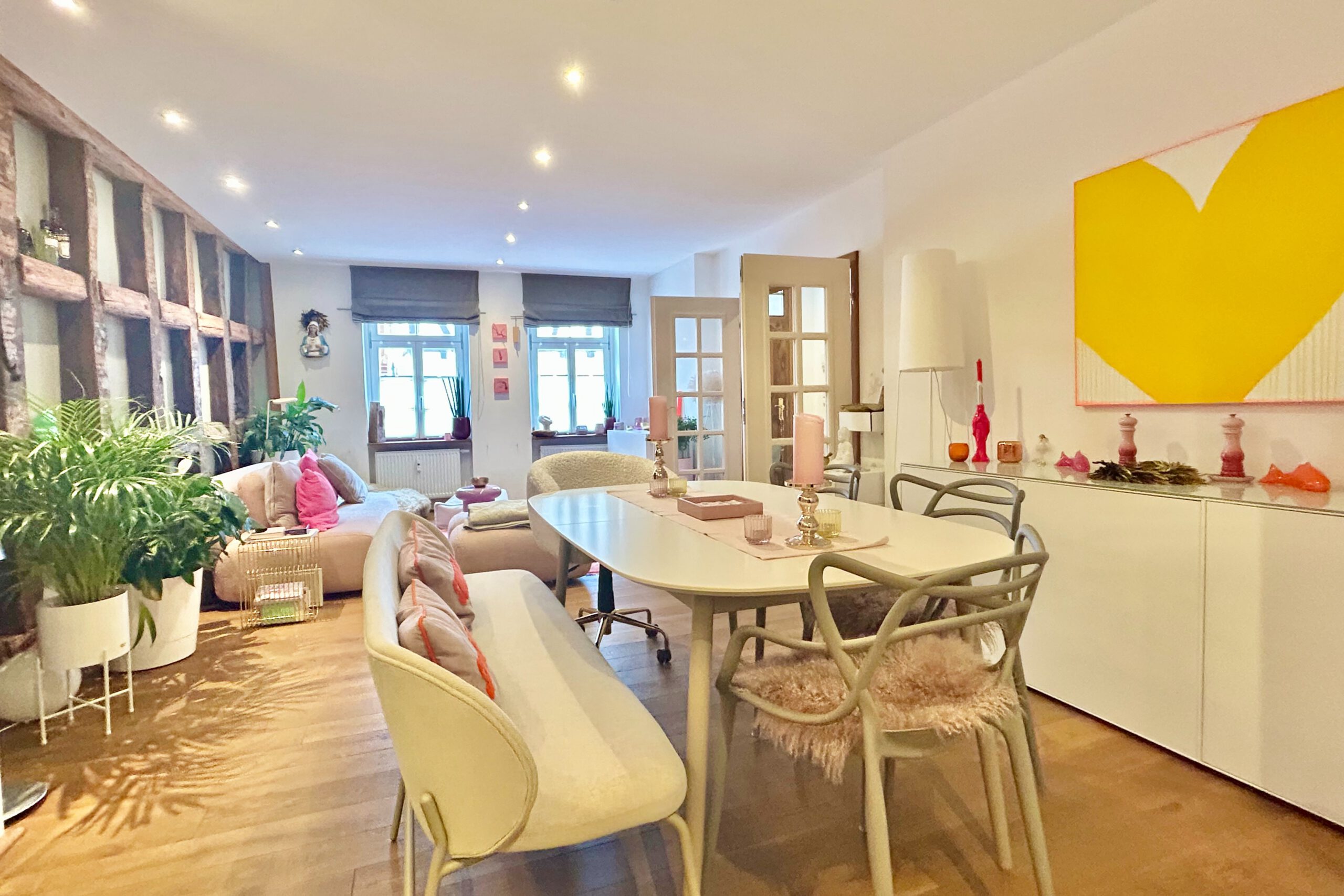 Dieses denkmalgeschützte Ensemble vereint historischen Charme mit modernem Wohnkomfort. Das Anwesen, dessen Haupthaus bis ins Jahr 1500 zurückreicht, wurde zwischen 2009 und 2011 aufwendig kernsaniert. Dabei wurde besonderer Wert auf den Erhalt der historischen Substanz gelegt und mit zeitgemäßen Elementen ergänzt.