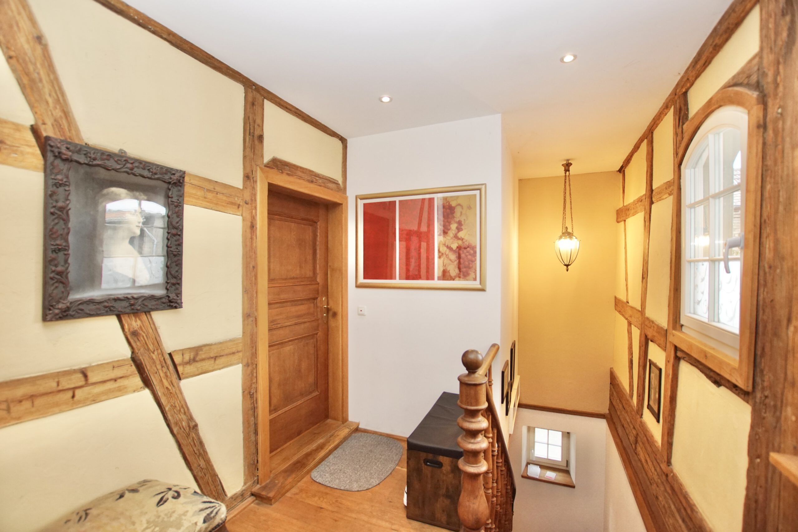 Die beiden denkmalgeschützten Häuser wurde zwischen 2009 und 2011 aufwendig und mit viel Liebe zum Detail saniert- historischer Charme verbunden mit modernem Wohnkomfort. Sämtlich Gewerke von Elektrik, Heiz-Wasser-Installation, Bodenbeläge, Fenster, starke Dachdämmung und Neueindeckung mit Naturschiefer – eine komplette Kernsanierung der historischen Gebäude.