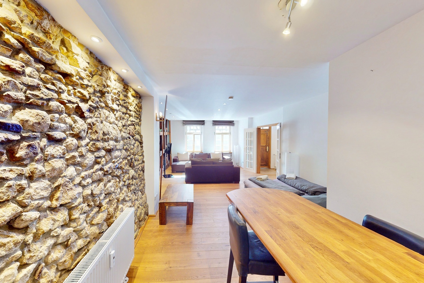 Neun individuell gestaltete Wohneinheiten wurden mit hochwertigen Materialien ausgestattet, darunter massive Eichendielen, freigelegte Holzbalken und Natursteinelemente in den Bädern. Jede Wohnung verfügt über eine moderne Einbauküche, ebenfalls mit Natursteinarbeitsplatten.