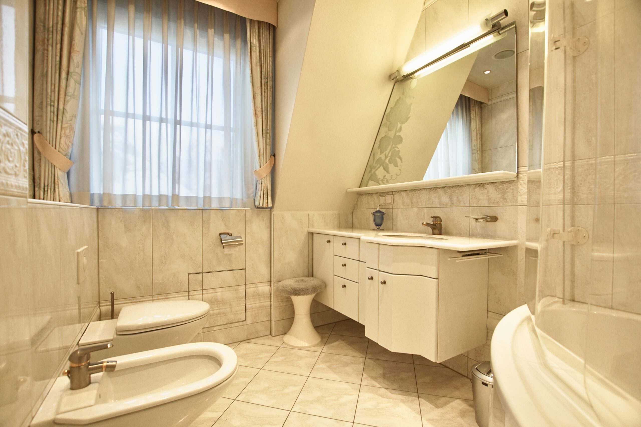 - Badausstattung: Dusche, Badewanne, Fenster im Badezimmer, Bidet