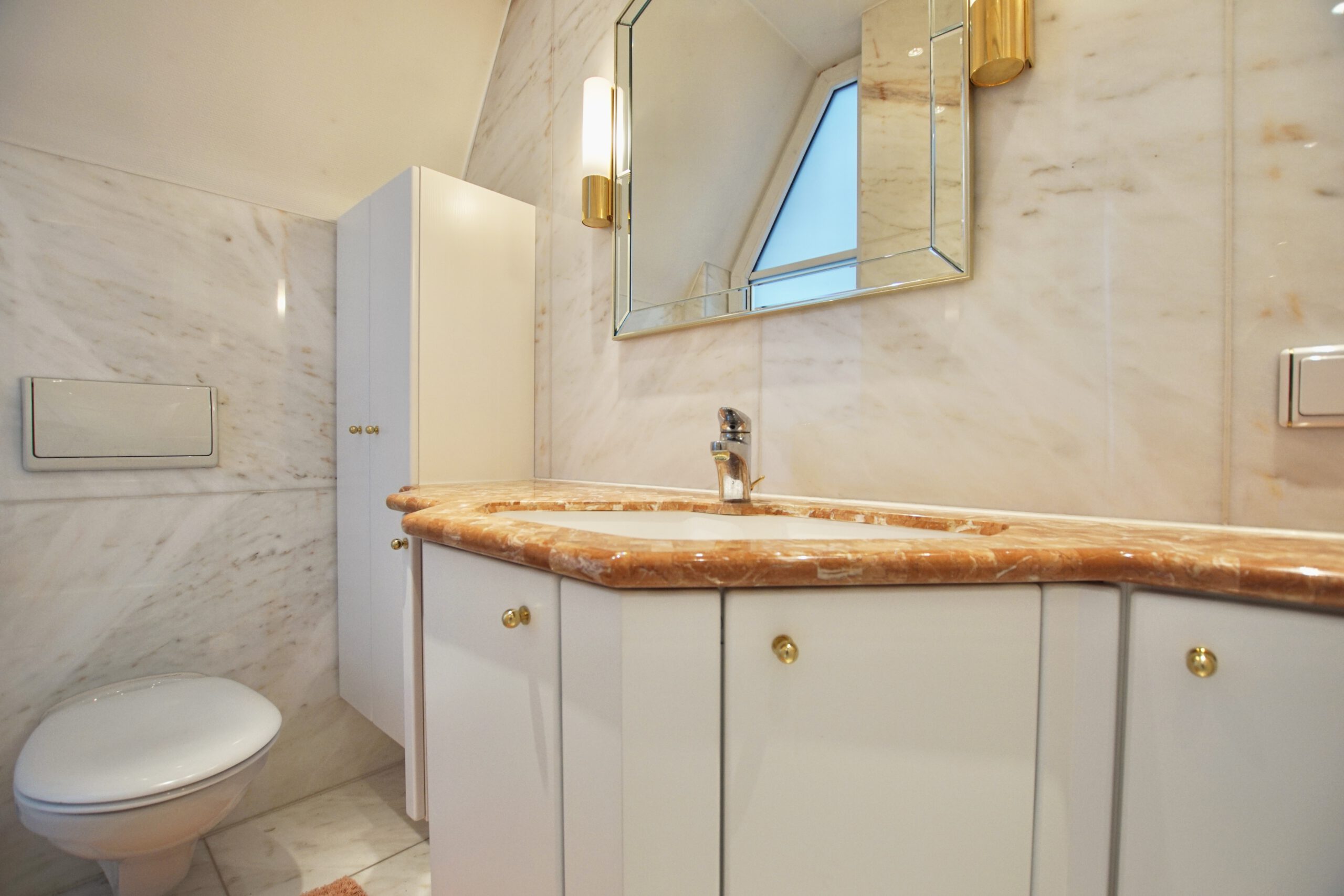 Die Wohnung überzeugt durch ihren hochwertige Ausstattung den den großzügigen Schnitt. Hier wurde an nichts gespart: hochwertige Einbauküche, Einbauschränke, Regale, Leuchten, vier Balkone, Kamin, Marmorsäulen und vieles mehr.