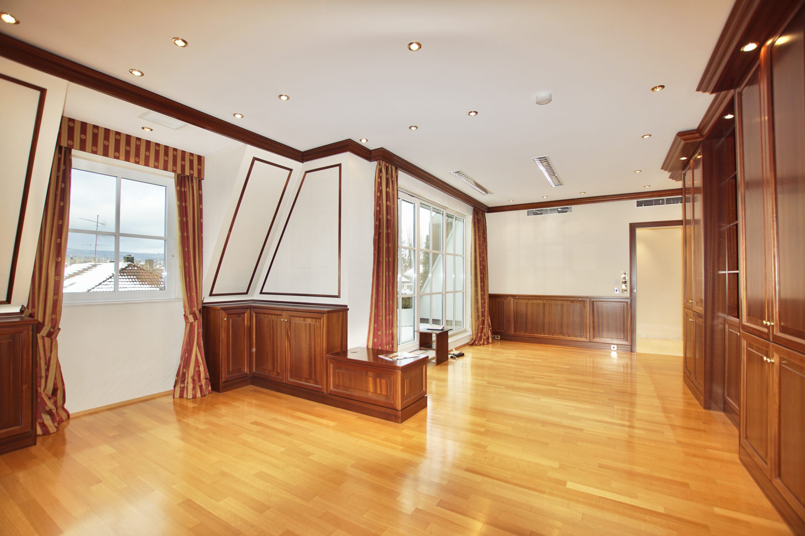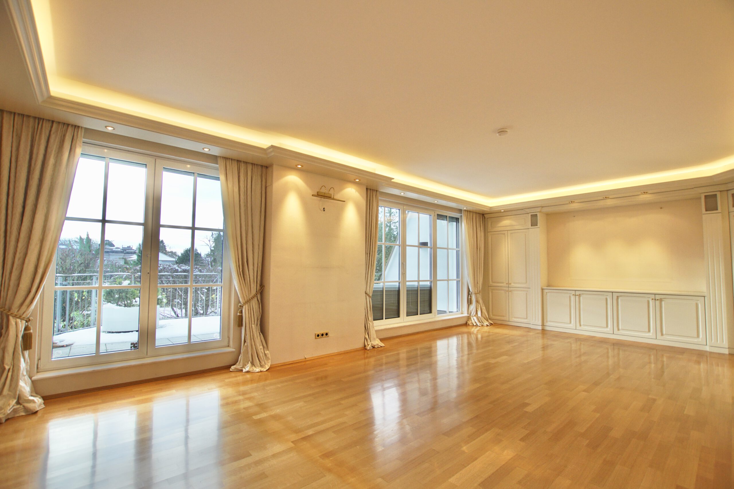 Through the various floor-to-ceiling windows and the four balconies you can enjoy a magnificent view over the rooftops of the city of Wiesbaden.
