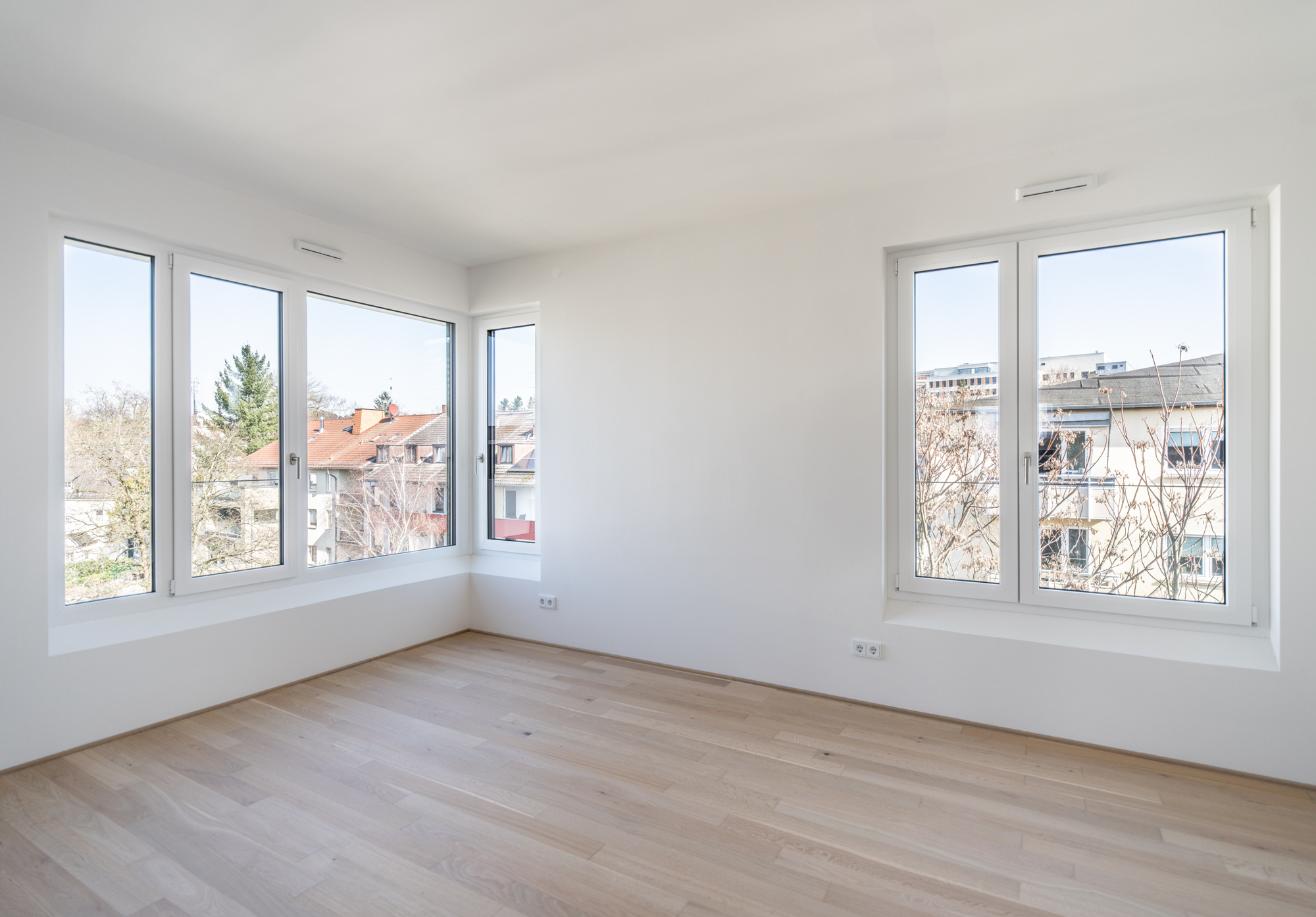 Dieses exklusive Penthouse im 3. Obergeschoss bietet 94 mÂČ WohnflĂ€che und beeindruckt durch eine besonders helle und groĂzĂŒgige WohnatmosphĂ€re. Die Raumhöhe von ĂŒber 2,70 Metern sowie bodentiefe Fenster sorgen fĂŒr viel Licht und Offenheit, wĂ€hrend edles Eichenparkett und elegante InnentĂŒren in Ăberhöhe den hochwertigen Charakter unterstreichen.