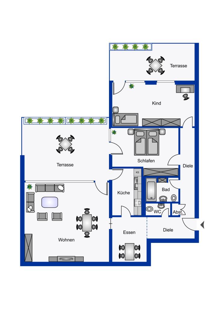 Terrassenhaus mit gelungener Architektur und perfektem Grundriss: auf über 100 m² präsentiert sich die 3-4Zimmer-Wohnung modern, hell und sonnig! Genießen Sie die große Terrasse mit wunderbarem Blick ins Grüne!