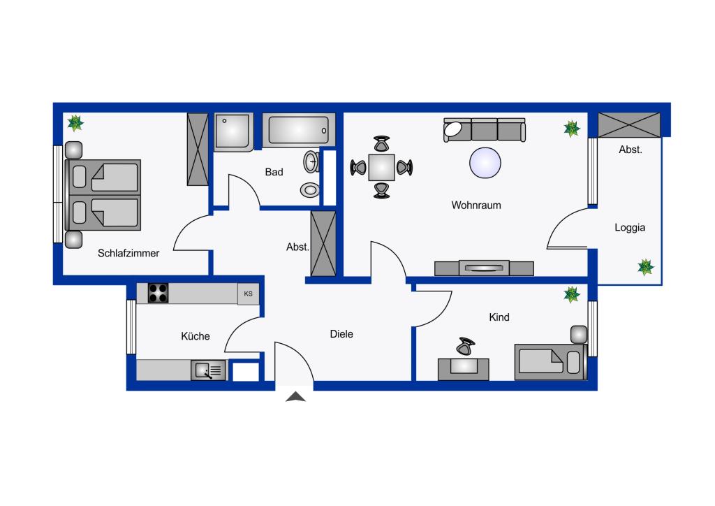 Aufzug oder Treppe, es sind kurze Wege in Ihr neues Zuhause: die großzügige Diele empfängt Sie, ein sonniges Wohnzimmer mit großer Loggia wird Ihnen gefallen und Ihnen im Sommer ein zweites Wohnzimmer schenken. Zwei Schlafzimmer, ein modernes Bad mit Wanne und Dusche und die perfekt eingerichtete Einbauküche lassen keine Wünsche offen!