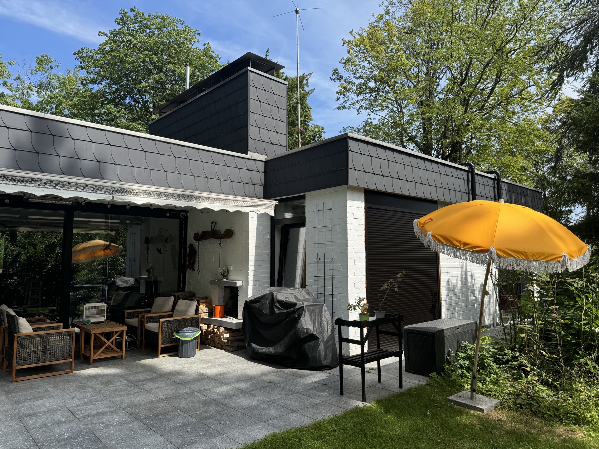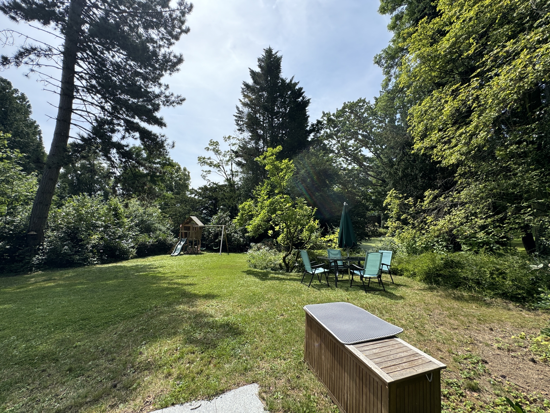 Ein weiteres Highlight des Anwesens ist das charmante Chalet im weitläufigen Garten, das aktuell als Air – BnB vermietet wird. Dieses Chalet bietet nicht nur zusätzlichen Raum für Gäste, sondern auch eine attraktive Möglichkeit zur Generierung von Mieteinnahmen. Der Garten, der das etwa 1.450 m² große Grundstück umgibt, bietet reichlich Platz für Freizeitaktivitäten, gärtnerische Gestaltung und Erholung im Grünen.