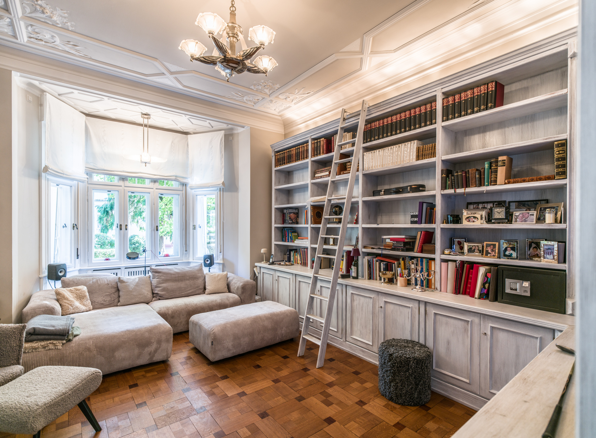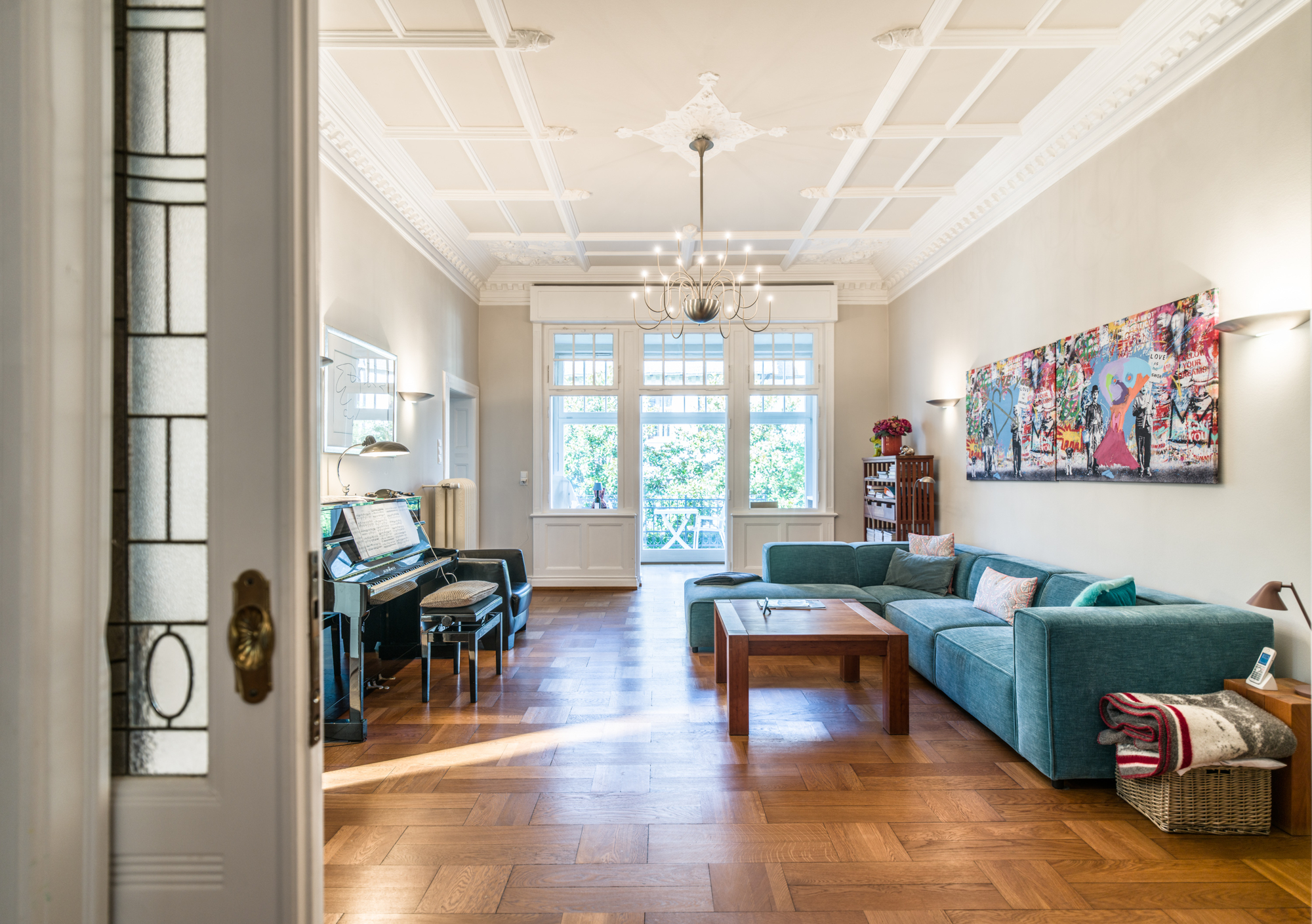 – gut erhaltene Stilelemente wie Kassettenfenster, Stuckelemente, gusseiserne