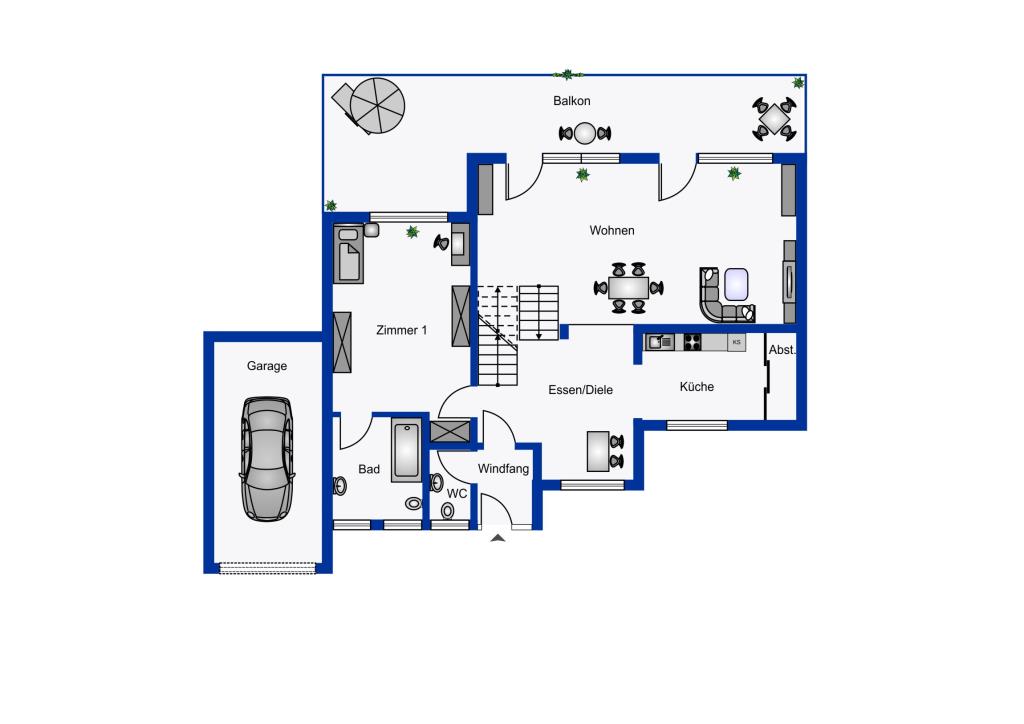Eine Garage und ein Stellplatz vor dem Haus gehören dazu. -