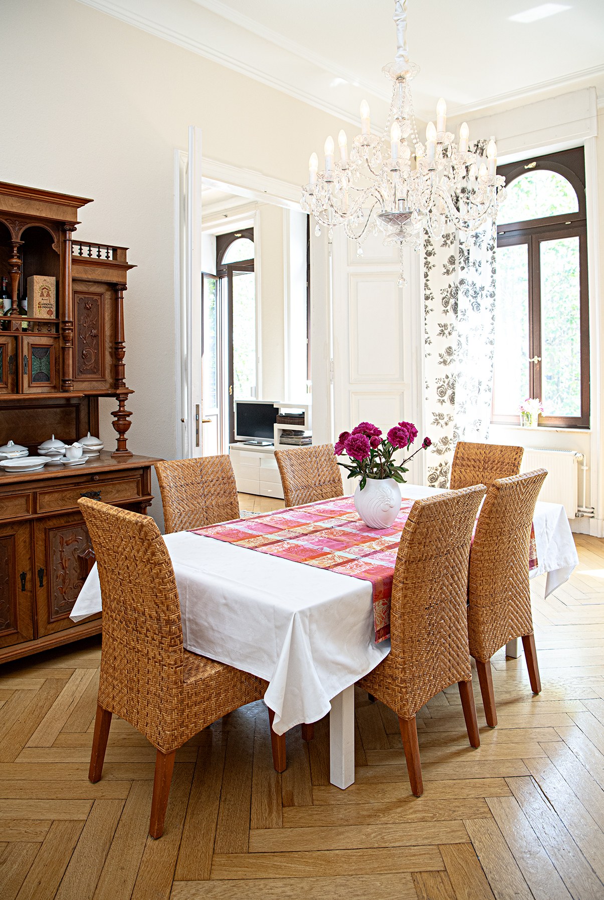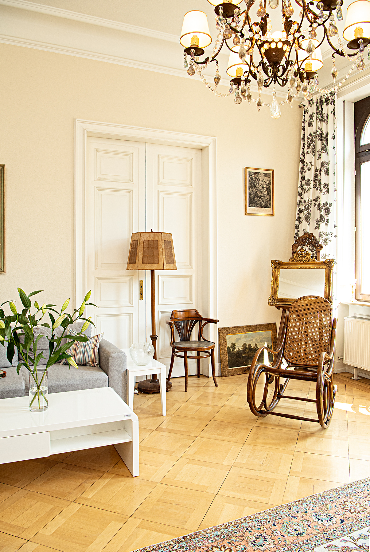 Die Kombination aus klassischer Architektur und modernem Wohnkomfort schafft eine Atmosphäre, in der man sich sofort zu Hause fühlt. Zusätzlich gehört zur Wohnung ein eigener Kellerraum, der weiteren Stauraum bietet.