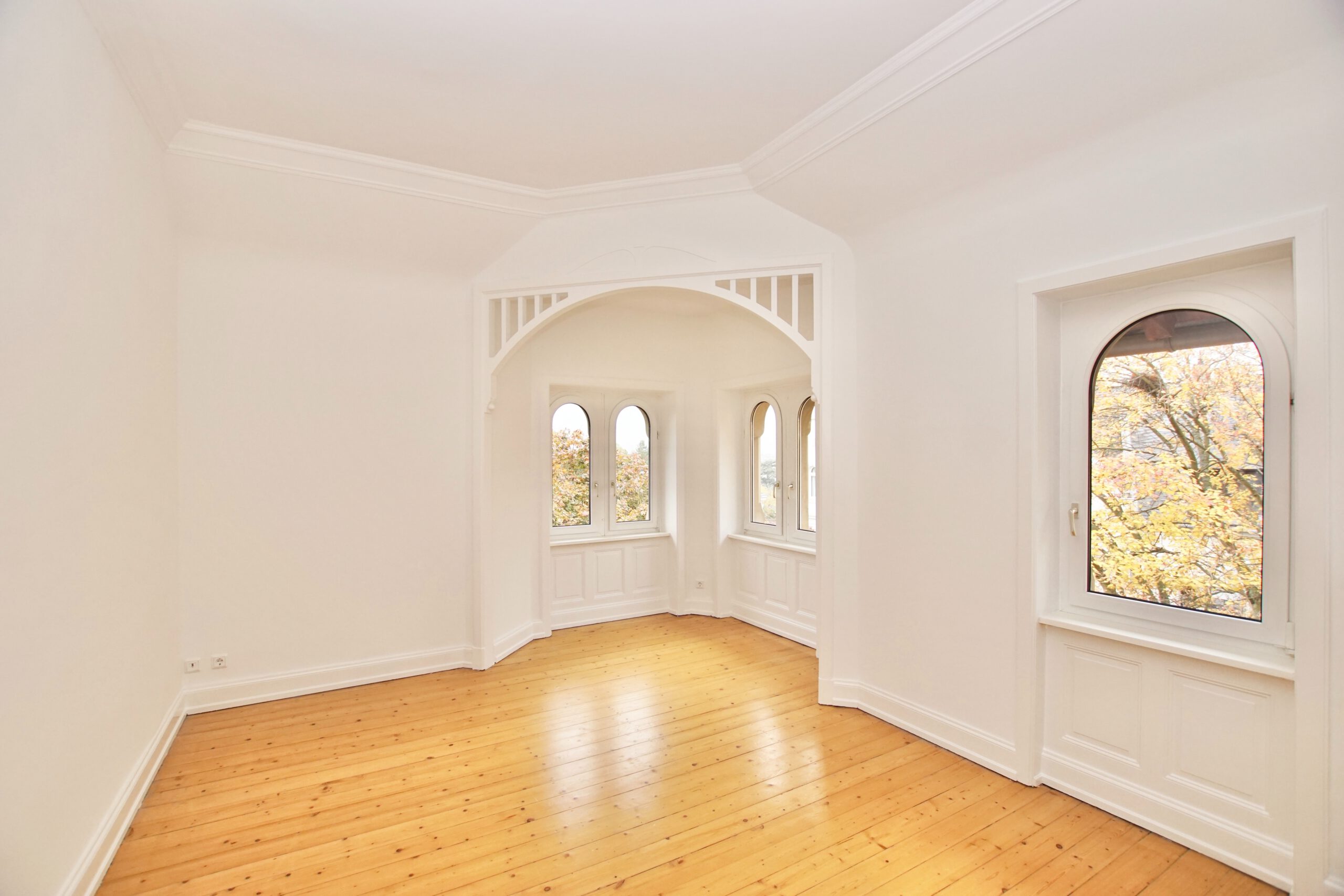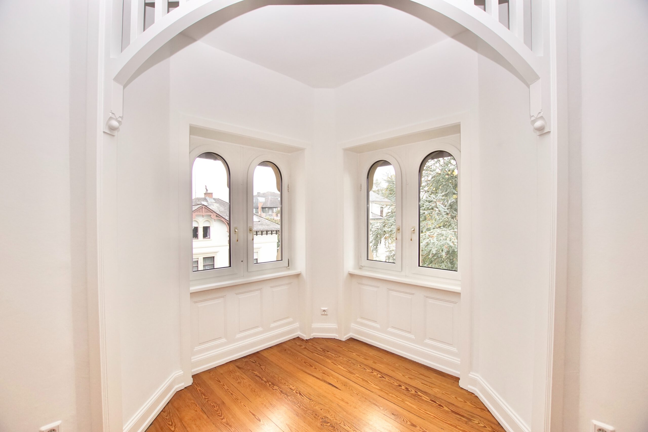 Diese 166 Quadratmeter große Wohnung befindet sich im zweiten Obergeschoss einer denkmalgeschützten, historischen Villa im Wiesbadener Stadtteil City-Ost.