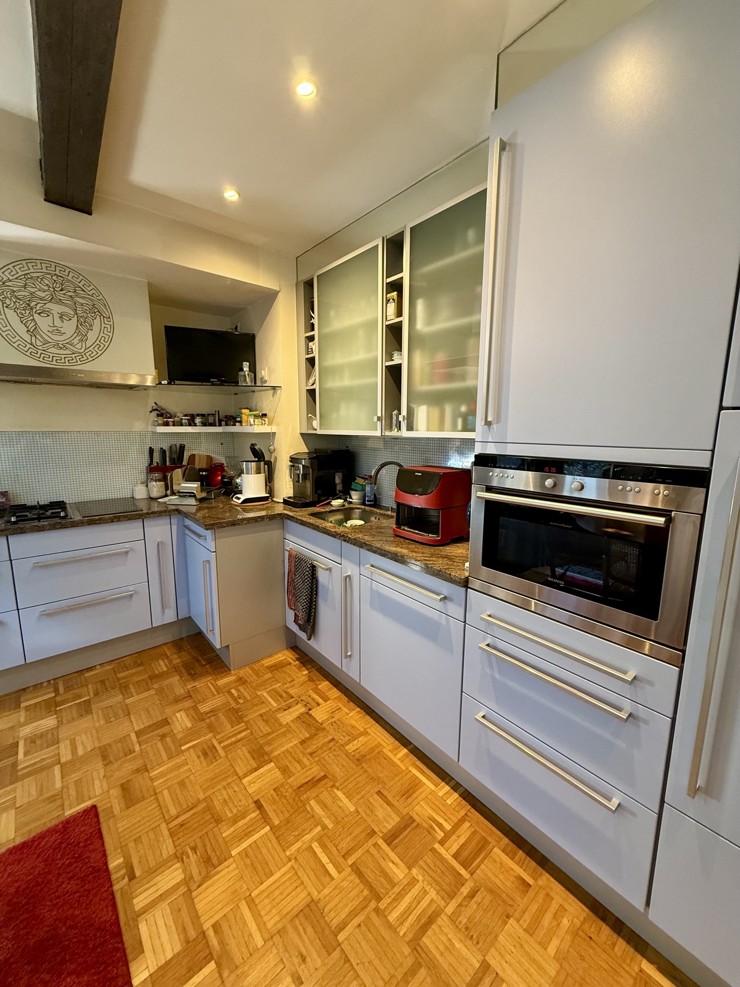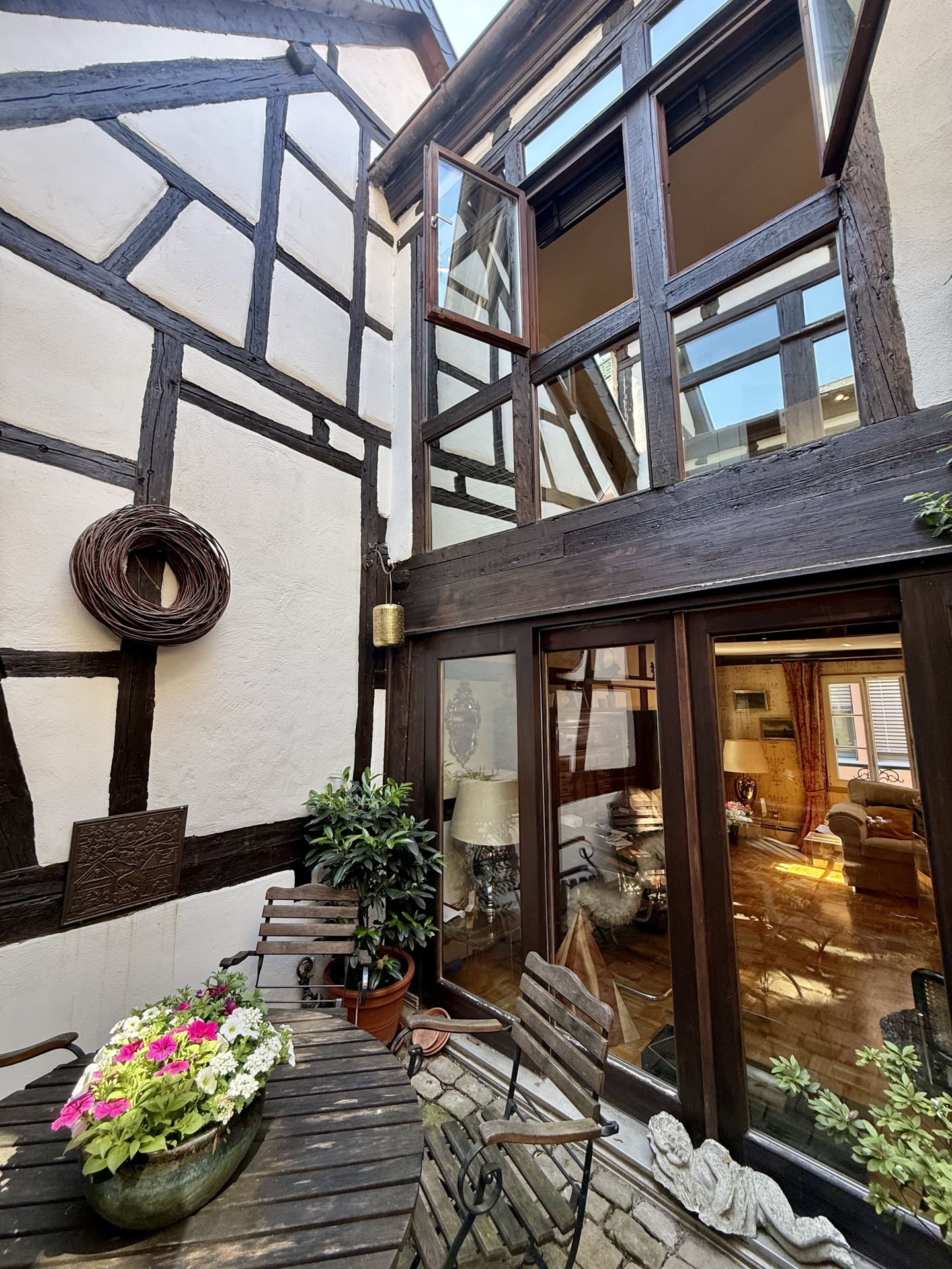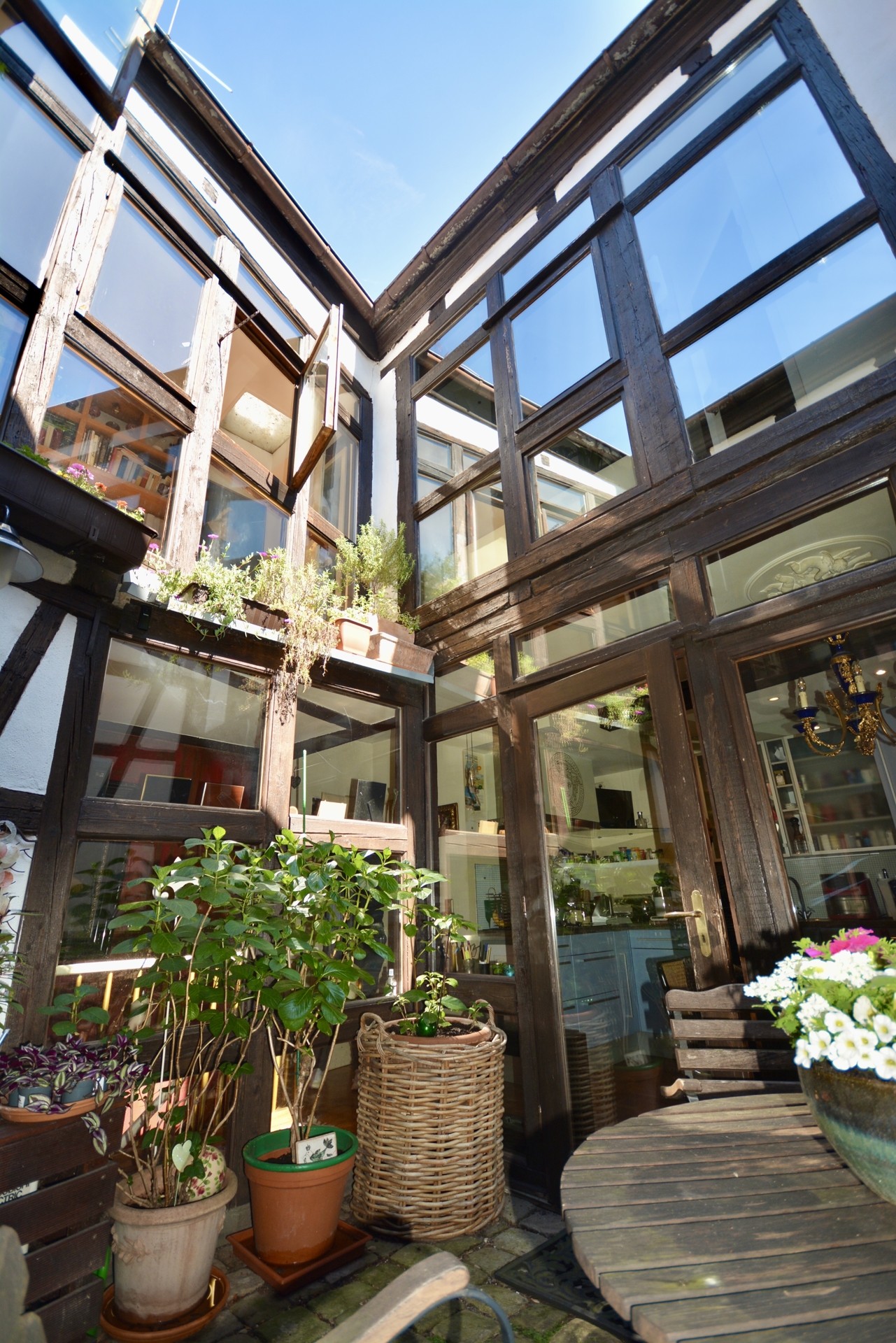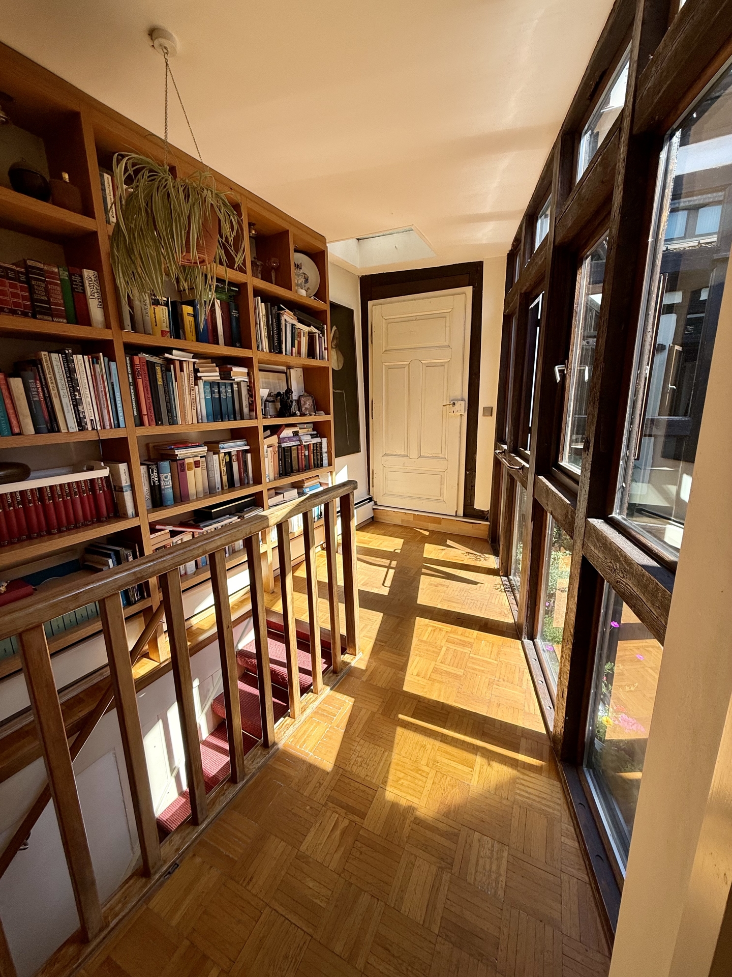 Das Haus verfĂŒgt ĂŒber insgesamt vier Zimmer sowie ca. 15 qm NutzflĂ€che. Das Parkett verleiht den RĂ€umen WĂ€rme und Charakter, wĂ€hrend zahlreiche Fenster â besonders durch das offene Artrium im Obergeschoss â fĂŒr viel Licht sorgen. Dieser Innenhof dient zugleich als idyllische Terrasse und schafft eine besondere WohnatmosphĂ€re.