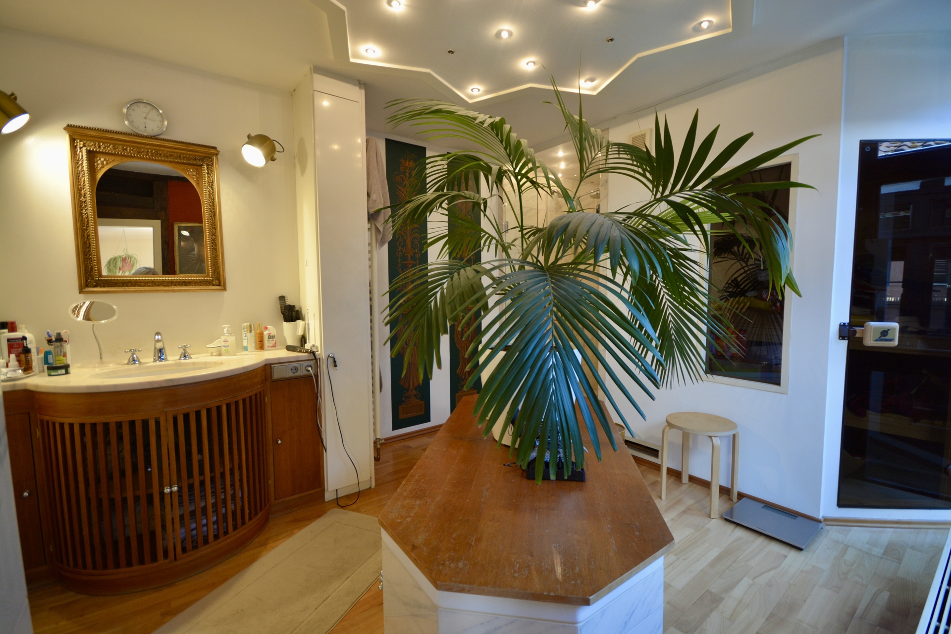 Das Dachgeschoss bietet Wellness- und Wohnkomfort auf hohem Niveau. Neben dem Bad mit einer freistehenden Badewanne mitten im Raum, einer Walk-in-Dusche und einer integrierten Sauna, befindet sich hier auch das Schlafzimmer mit angrenzendem Ankleideraum bzw. begehbarem Kleiderschrank.