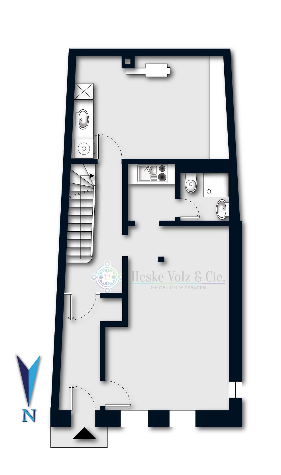 Das Erdgeschoss umfasst einen groĂzĂŒgigen Raum, der aktuell als Home-Office genutzt wird und vielfĂ€ltige Nutzungsmöglichkeiten bietet. In der Vergangenheit wurde diese Etage auch als separate Einliegerwohnung vermietet.