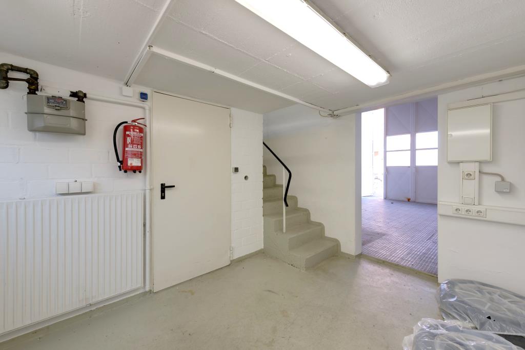Es befinden sich vier große Hallen für Fahrzeuge oder Lagermöglichkeiten im Bürohaus. Der Hof ist eingezäunt und mit einem Tor gesichert.