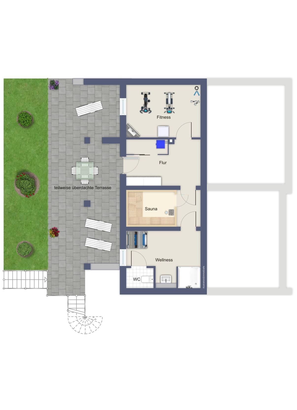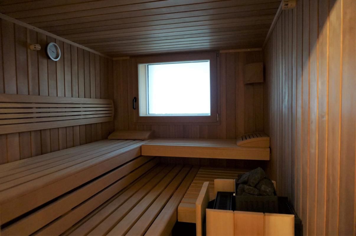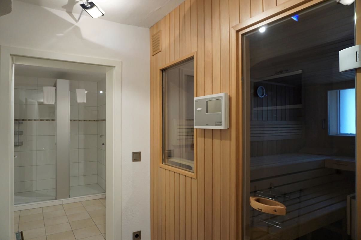 Ergänzt wird das Angebot durch einen beeindruckenden Wellnessbereich im Kellergeschoss, der mit Sauna, Infrarotkabine und Fitnessraum ausgestattet ist.